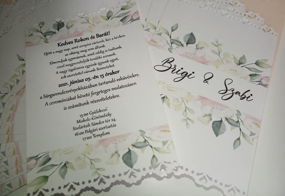 Fontos információ: Meghívóimhoz egyszeri szerkesztési díjat számítunk fel, amelynek összege 1500 Ft – kérjük, ezt kalkuláld be a rendelésedbe!