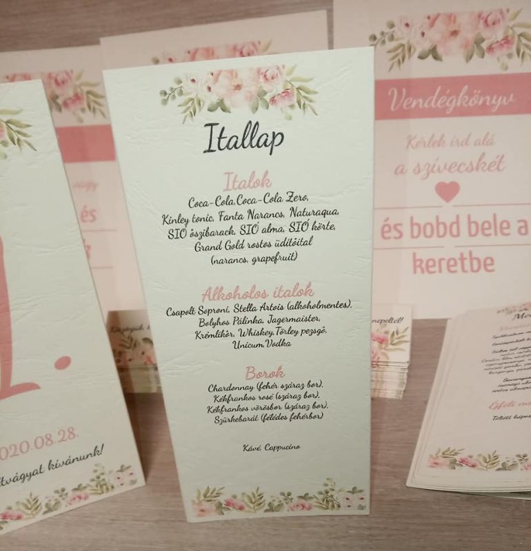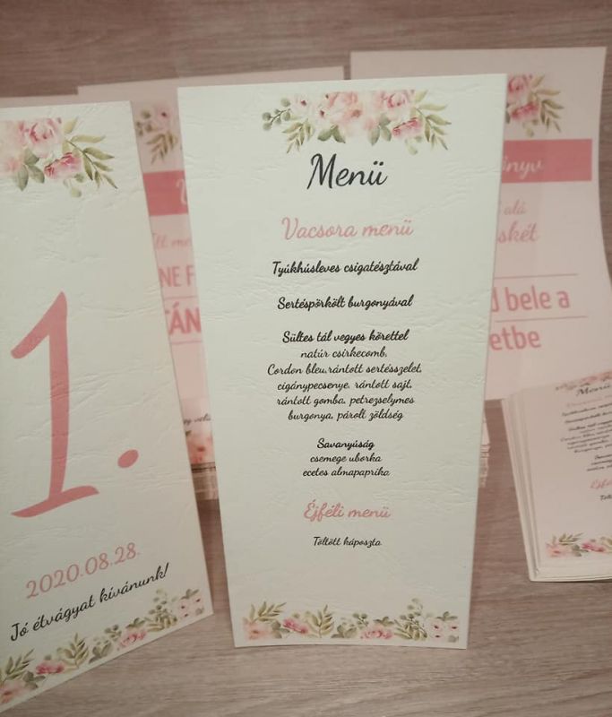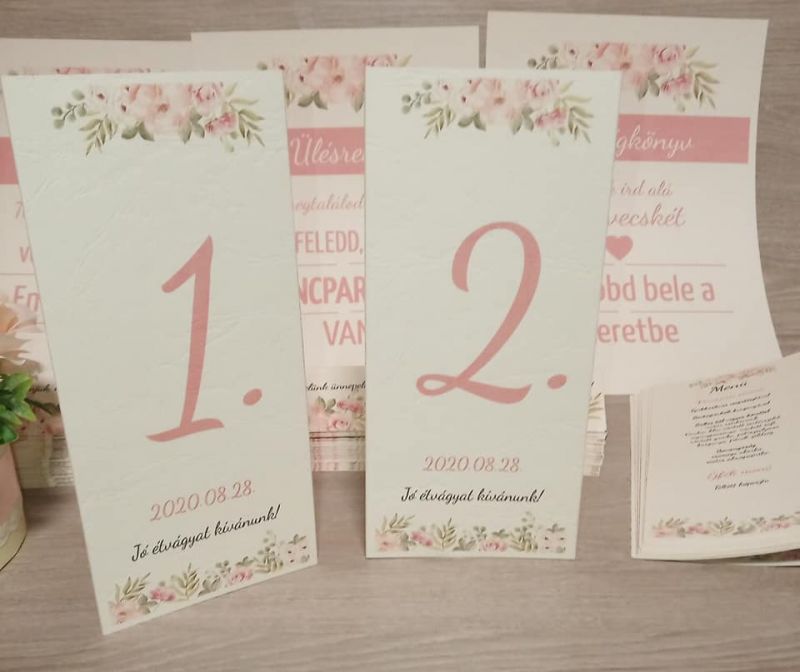 | ültetőkártya | asztalszám | menükártya | RSVP kártya (válaszkártya) | save the date | ültetési rend |