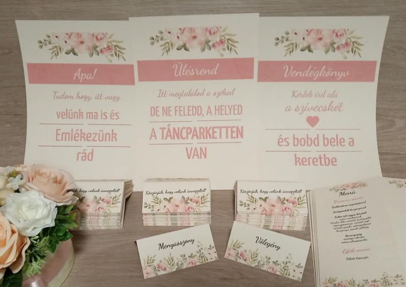 Esküvőre szánt grafikai termékeim között megtalálhattok minden fontos elemet, amelyekkel harmonikus és egyedi megjelenést adhattok esküvőtöknek.