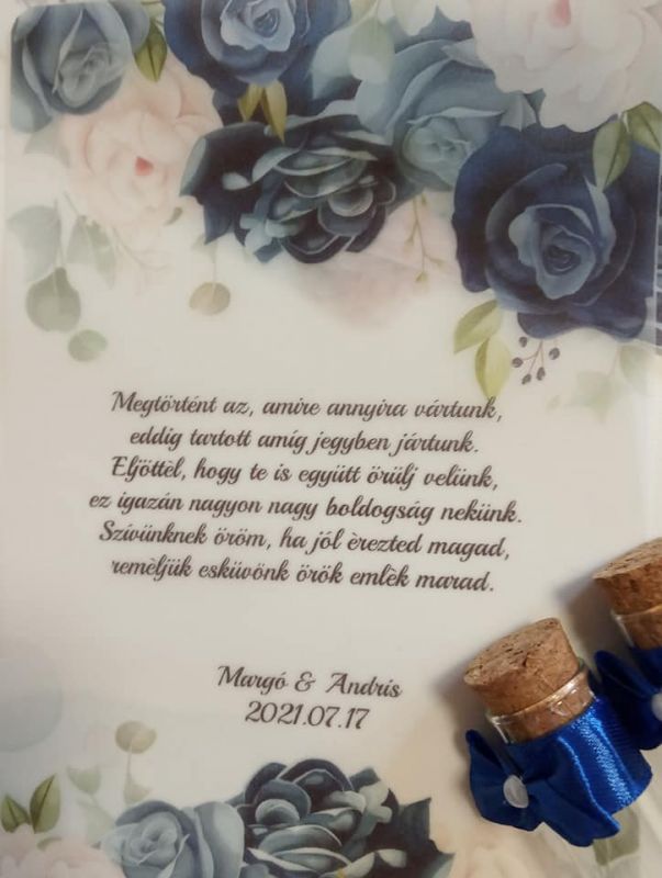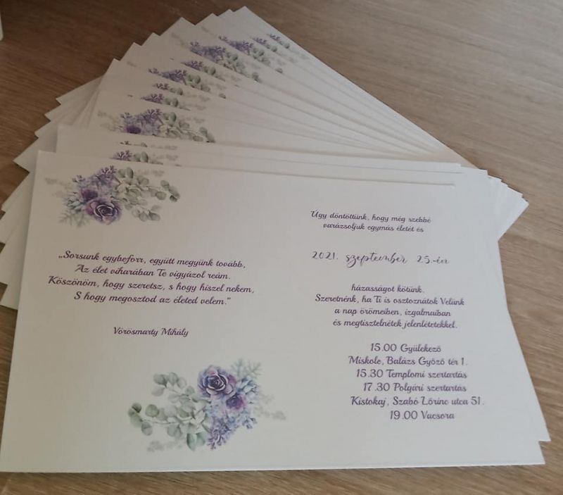 Amennyiben nem találtatok a kínálatomban nektek megfelelőt és egyedi igény szerint szeretnél rendelni kérlek pontosan írd le milyen szöveggel szeretnéd a meghívót és kiegészítők elkészítését kérni és küldd át a meghívóra szánt szöveget.