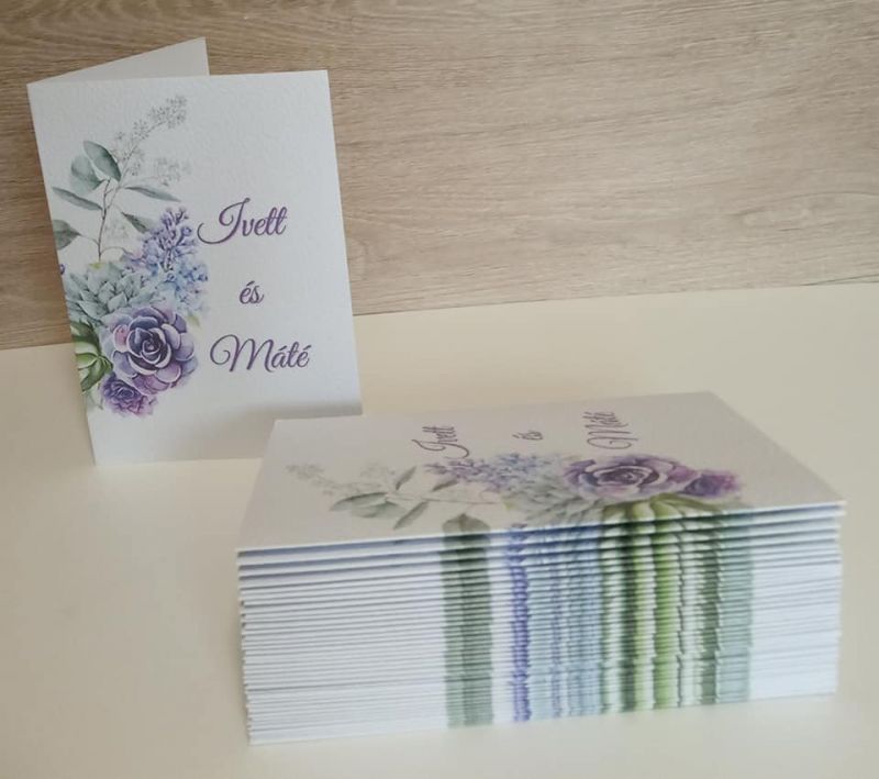Az oldalon szereplő kártyák minta kártyák, de egyedi igénynek megfelelően megtervezzük és elkészítjük esküvőtökre.