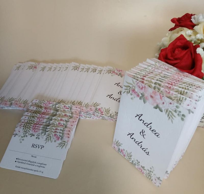 | Virág mintás egylapos, egyoldalas meghívók Ára: 750 Ft/db |