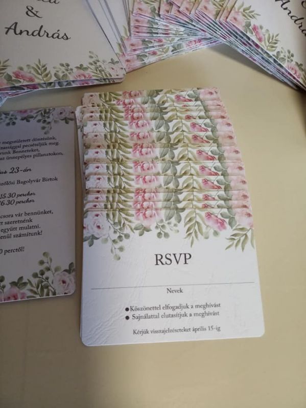 | RVSP- VÁLASZKÁRTYA – Megkönnyíti a visszajelzések begyűjtését, hogy minden részlet időben a helyére kerülhessen. |