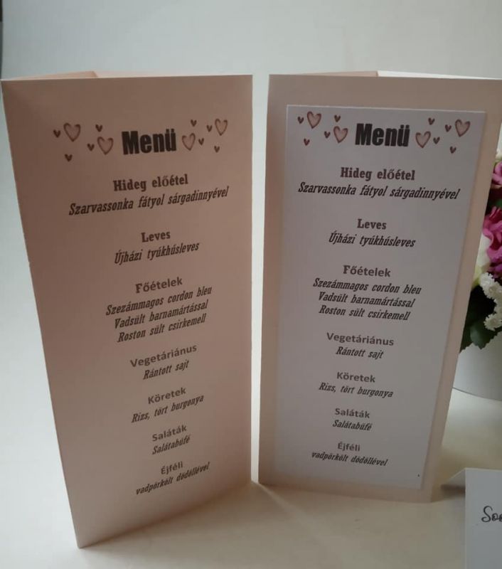 Asztalszám vagy a pár neve: Ha ültetési rend is van, a menükártya kombinálható névkártyaként.