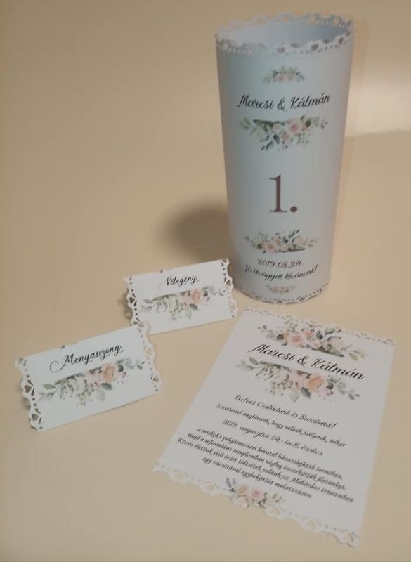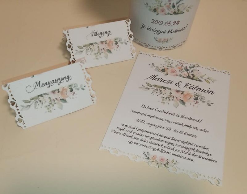 Ha megtetszenek a meghívóim, írd meg elképzelésedet, és szívesen segítek a kiválasztásban. Meghívókhoz készíthetek további kiegészítőket is, például ültetőkártyát, menükártyát, asztalszámot és ültetőtáblát, hogy minden részlet harmonizáljon.