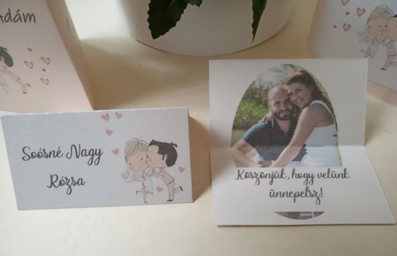 | 1. Sátras ültetőkártya kétoldalas nyomtatással Ár: 170 Ft/db + egyszeri szerkesztési díj: 1500 ft. |
