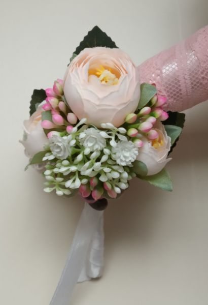 Anyaghasználat: Készülhet élethű selyemvirágból, szalagokkal, gyöngyökkel vagy egyéb díszítőelemekkel, hogy tökéletes összhangban legyen a vőlegény öltözetével.