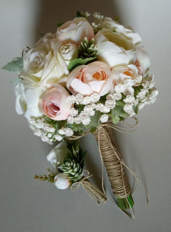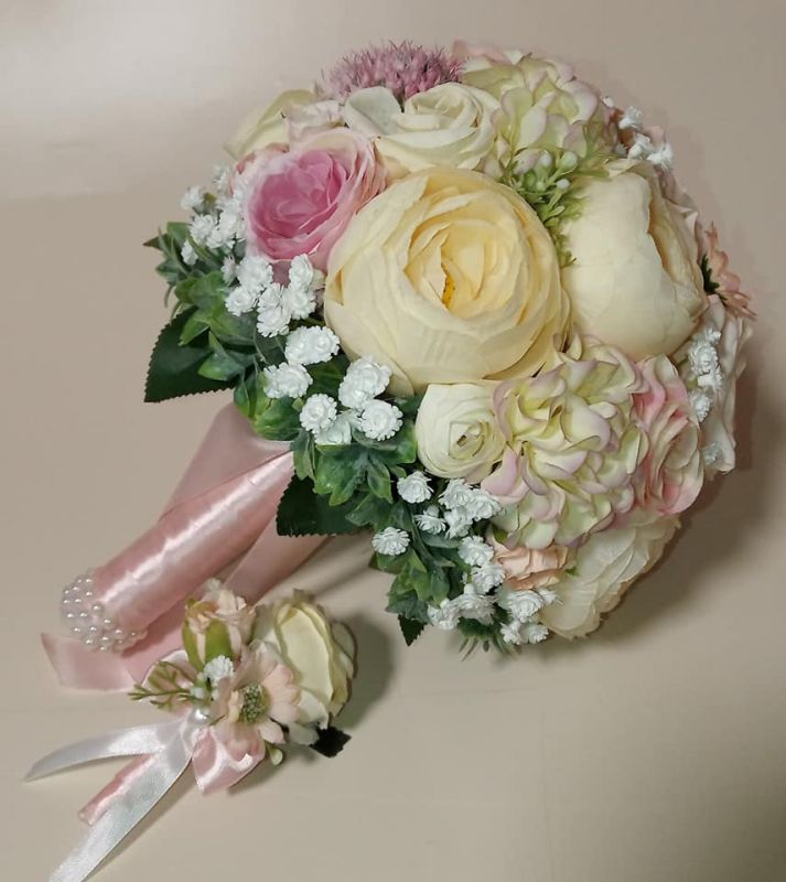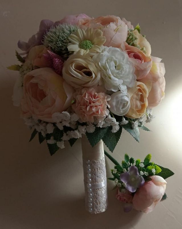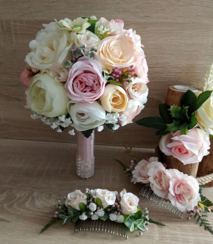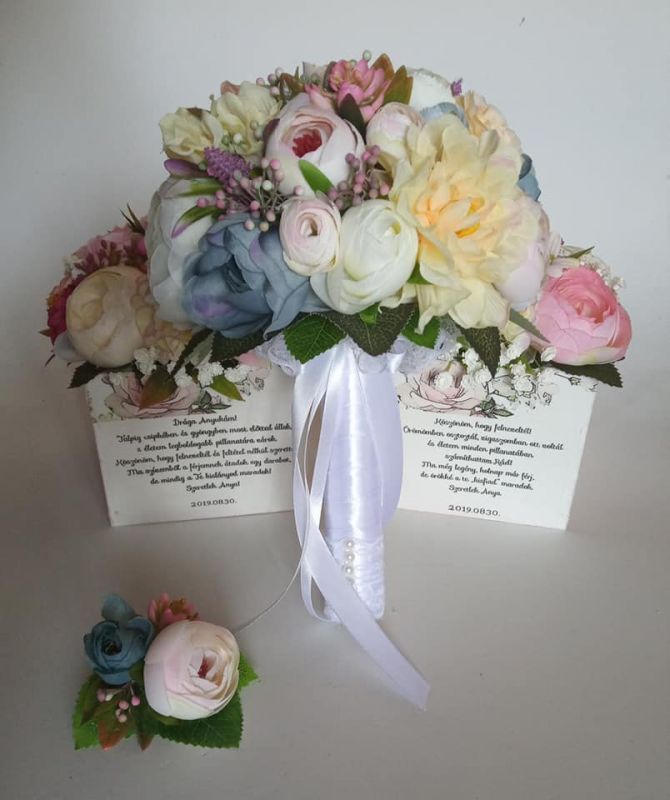| Anyagok: Készülhet selyemvirágból, gyöngyökkel, szalagokkal vagy más díszítő elemekkel, hogy a vőlegény öltözetével tökéletes harmóniát alkosson. |