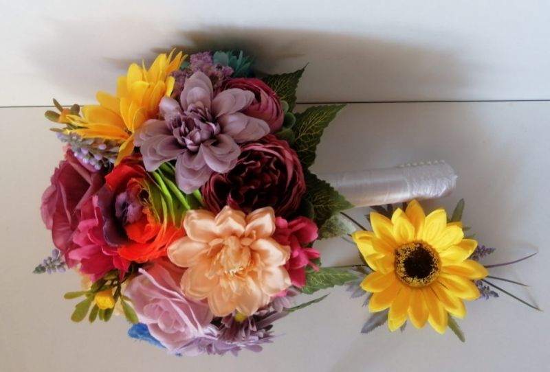 | Menyasszonyi csokor: Egyedi, élethű selyemvirágokból készült csokor, amely a te egyedi stílusodhoz illeszkedik. |