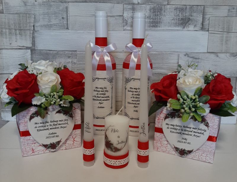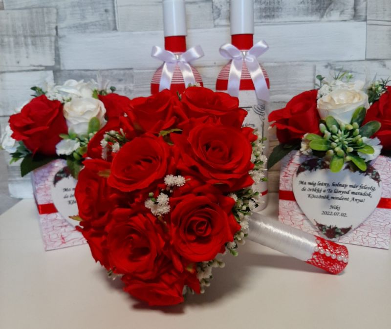 Egységesség: Mivel minden egy csomagban elérhető, biztos lehetsz abban, hogy a csokor, a vőlegény kitűzője és a szülőköszöntő ajándékok mindegyike harmonizálni fog.